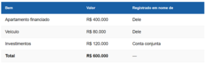 Na ausência de um contrato escrito entre o casal, vale o regime da comunhão parcial de bens. A regra é simples: tudo que foi adquirido durante a união pertence aos dois, em partes iguais, independentemente de quem pagou ou em cujo nome está registrado.